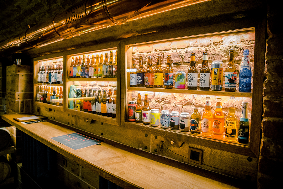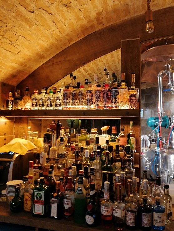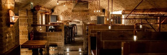Bar is situated in the basement of a historic building in Old Town of Riga. The building was used a warehouse in the 17th century. It has arch style brick sealings and brick walls with oak panneling.